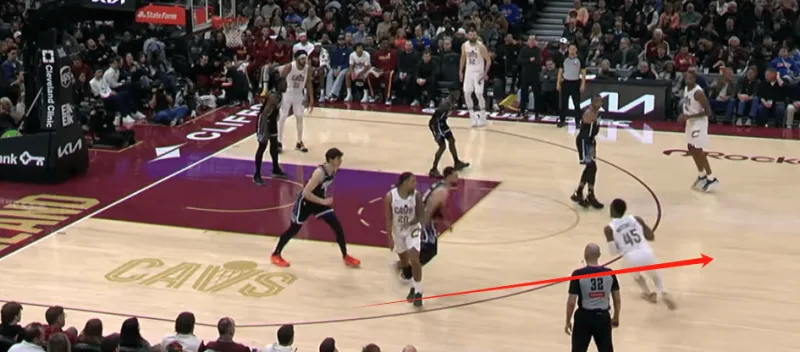 他承担了球队主要的攻坚任务,尤其是在加兰、杰罗姆离队后,骑士更多依赖米切尔的单打能力打开局面。他的中距离和篮下终结效率极高,外线牵制力极强,迫使对手必须包夹他,从而为队友创造出大量空位机会。本赛季已34次砍下30+,是骑士队史自詹姆斯以来单赛季30+次数最多的球员。虽非传统外线大闸,但米切尔本赛季防守态度明显提升,积极绕掩护、对抗对手核心后卫,甚至能在关键时刻完成抢断助攻。
