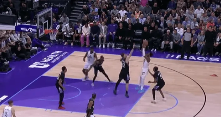 面对补防的中锋直接抛投命中
